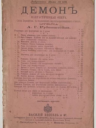 Висковатов П.А. Демон. Фантастическая опера в 3 действиях.