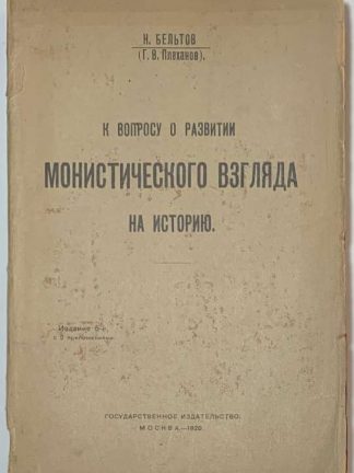 Плеханов Г.В. (Н. Бельтов) К вопросу о развитии монистического взгляда на историю.