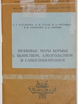 Агеенкова Г.Т., Гусов К.Н. Правовые меры борьбы с пьянством, алкоголизмом и самогоноварением.