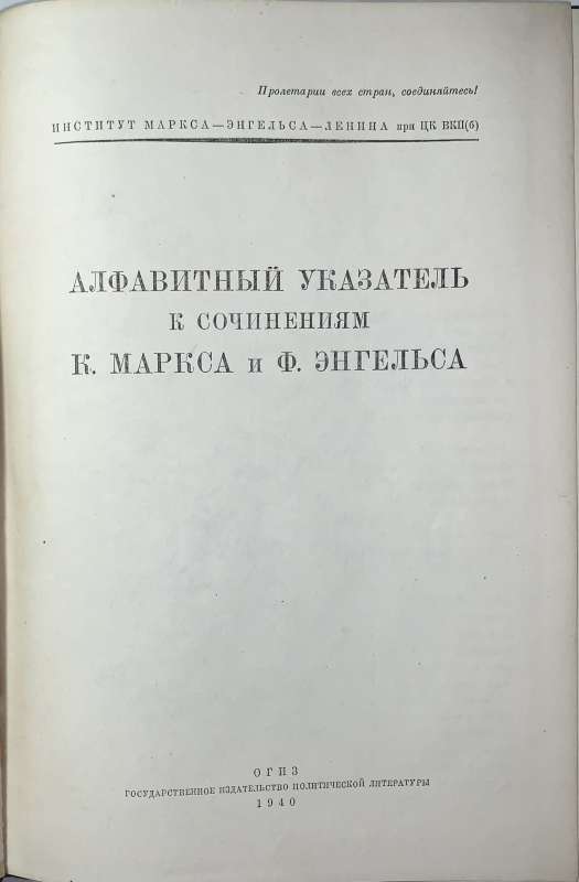 Алфавитный указатель к сочинениям К. Маркса и Ф. Энгельса. Институт Маркса-Энгельса-Ленина при ЦК ВКП(б).