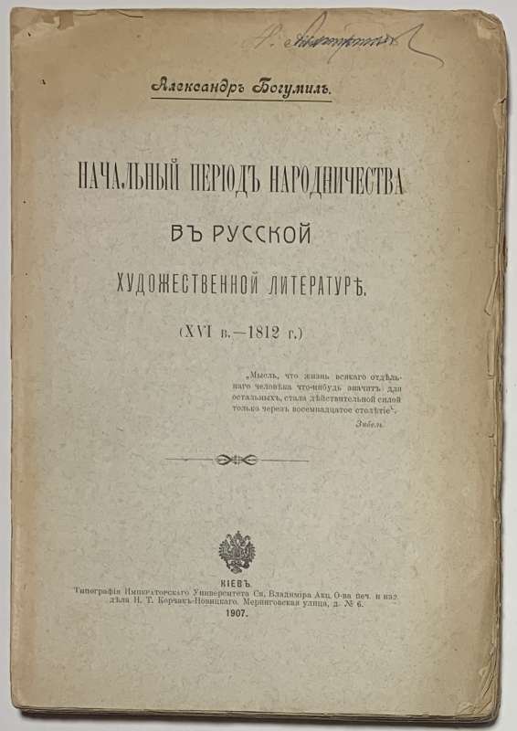 Киев: тип. Имп. Ун-та св. Владимира АО печ. и изд. дела Н.Т. Корчак-Новицкого, 1907.