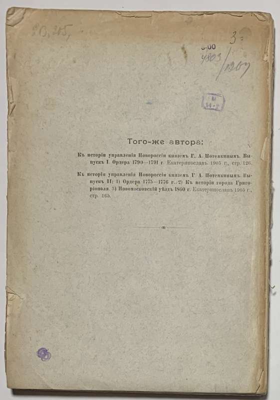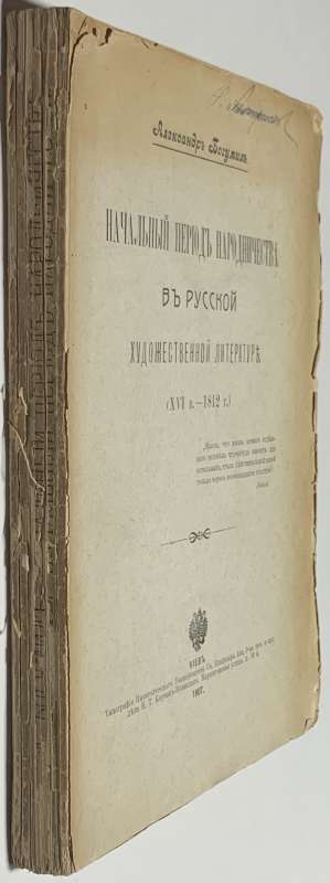 Удовлетворительная сохранность: надрывы полей обложки и стр., заломы уголков, блок распадается на тетради, зачеркнутая владельческая подпись на верхней сторонке обложки и титульном листе, пометы простым карандашом; Ошибки пагинации после стр. 72 идет 75,76,73,74,79,80,77,78,81.