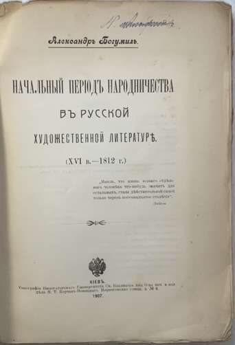 Богумил А.Г. Начальный период народничества в русской художественной литературе (XVI в.-1812 г.).