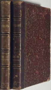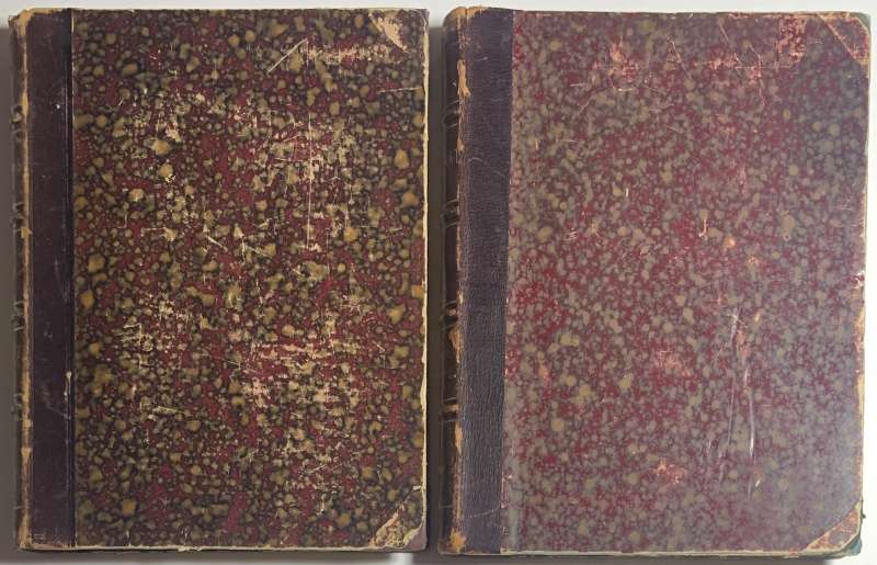 В двух полукожаных переплетах эпохи с золотым тиснением на корешках, сохранена издательская обложка.