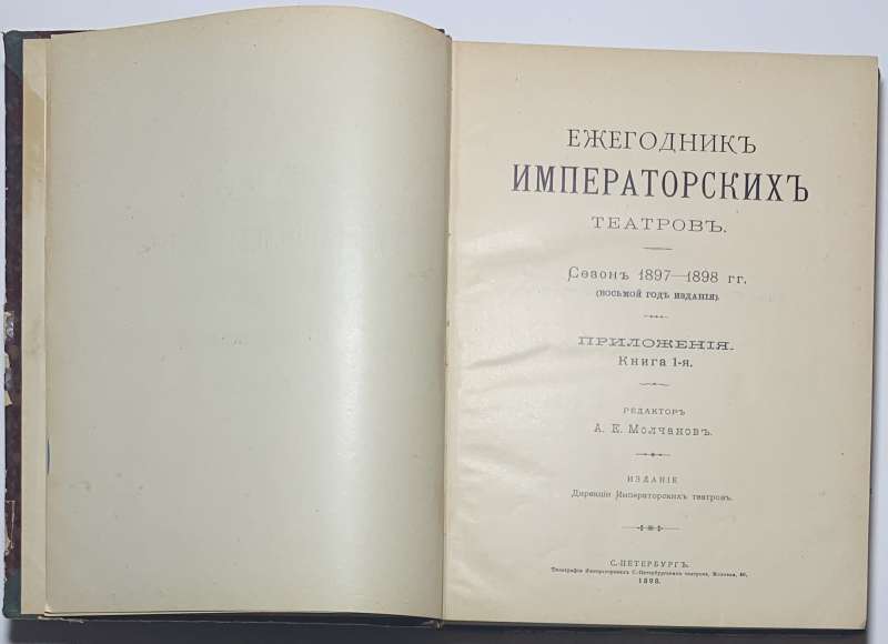 Ежегодник Императорских театров. 8 год издания. Сезон 1897–1898 гг. Приложения. Книга 1-2-3. Редактор А.Е. Молчанов. СПб.: издание Дирекции Императорских театров, тип. Императорских С.-Петербургских театров, 1898. 1: [3], 115, [1] с.: ил., 1 л. портр.; 2: [3], 123, [1] с.: ил., 1 л. портр.; 3: [3], 123, [1] с.: ил.