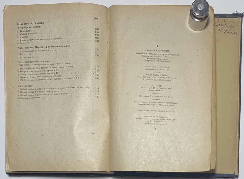 Удовлетворительная сохранность: надрывы ткани переплета, утрачены все л. со схемами, утрачена стр. 3-4 (возможно предисловие?), аккуратные пометы простым карандашом на неск. стр., след наклейки на первом форзацном листе.