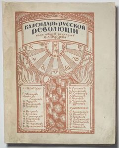 Впервые «Календарь Русской Революции» отпечатан в 1907 г. 12 цветных иллюстраций выполнены художниками: С. Чехониным, Е. Лансере, Б. Кустодиевым, М. Добужинским, З. Гржебиным, И. Билибиным, Б. Анисфельдом. Из аннотации: «Издание было арестовано царским правительством в день его окончания и ни один из экземпляров не попал тогда в продажу. Только впоследствии нам удалось путем хитрых ухищрений вырвать из рук охранников несколько экз., и с одного из этих экз. мы и делаем перепечатку настоящего издания…. Настоящее изд. календаря заключает в себя обзор революционных и общественных движений до 1905–06 гг.».