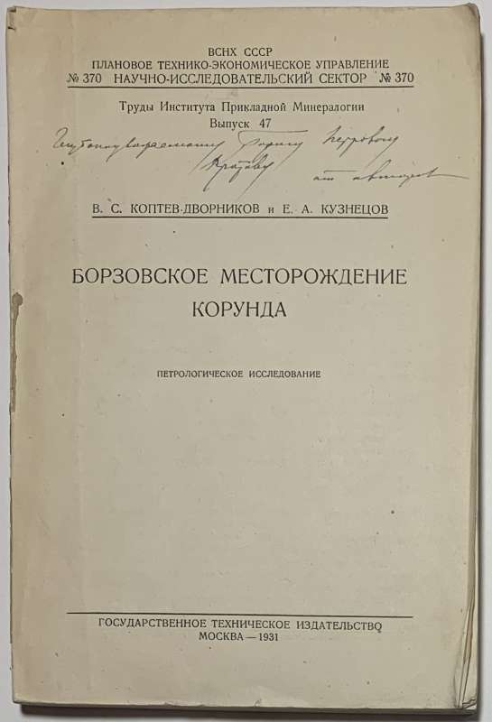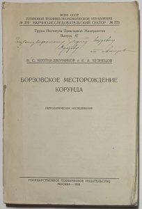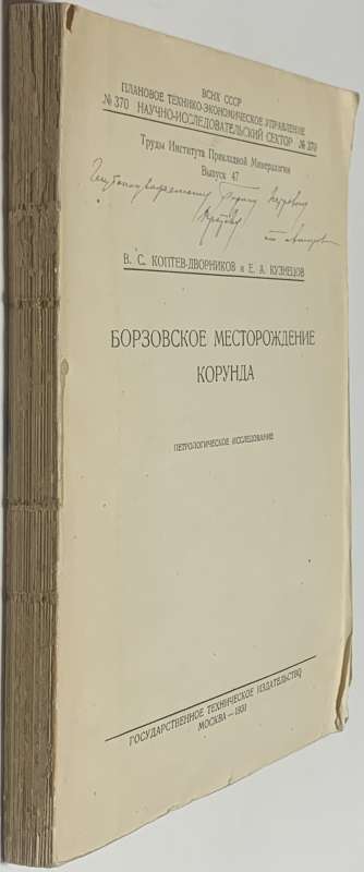 Коптев-Дворников В.С., Кузнецов Е.А. [Автографы] Борзовское месторождение корунда.