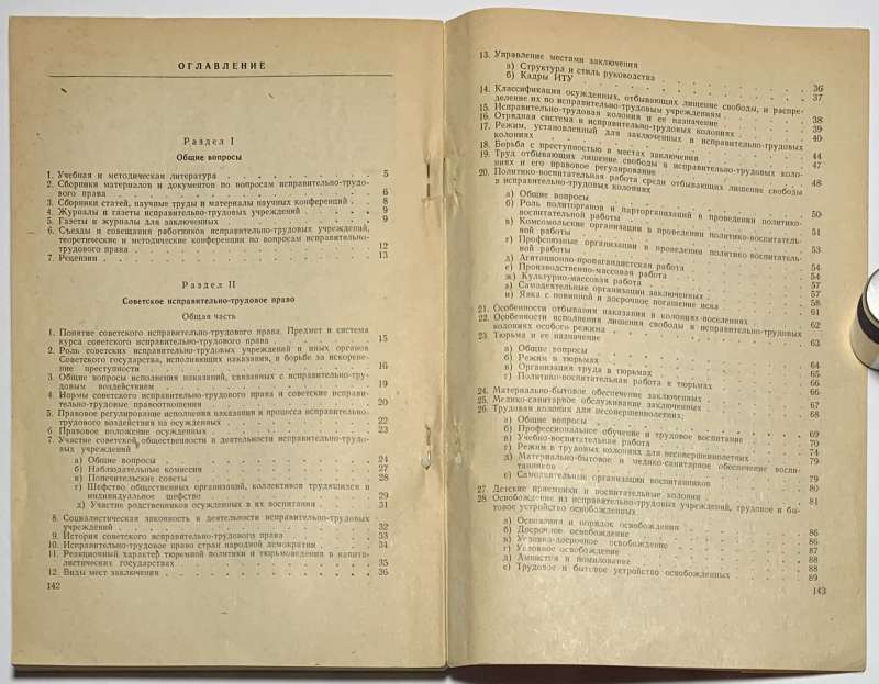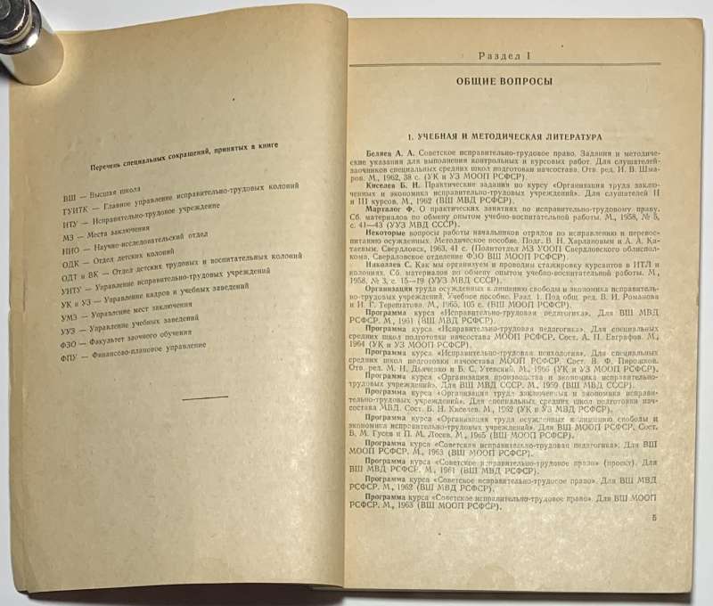 Читателю предлагается информация о нормативных актах, учебных программах и пособиях, монографиях, опубликованных в различных сборниках статьях и других материалах по вопросам советского исправительно-трудового права, педагогики, психологии, организации труда осужденных к лишению свободы и экономики ИТУ.
