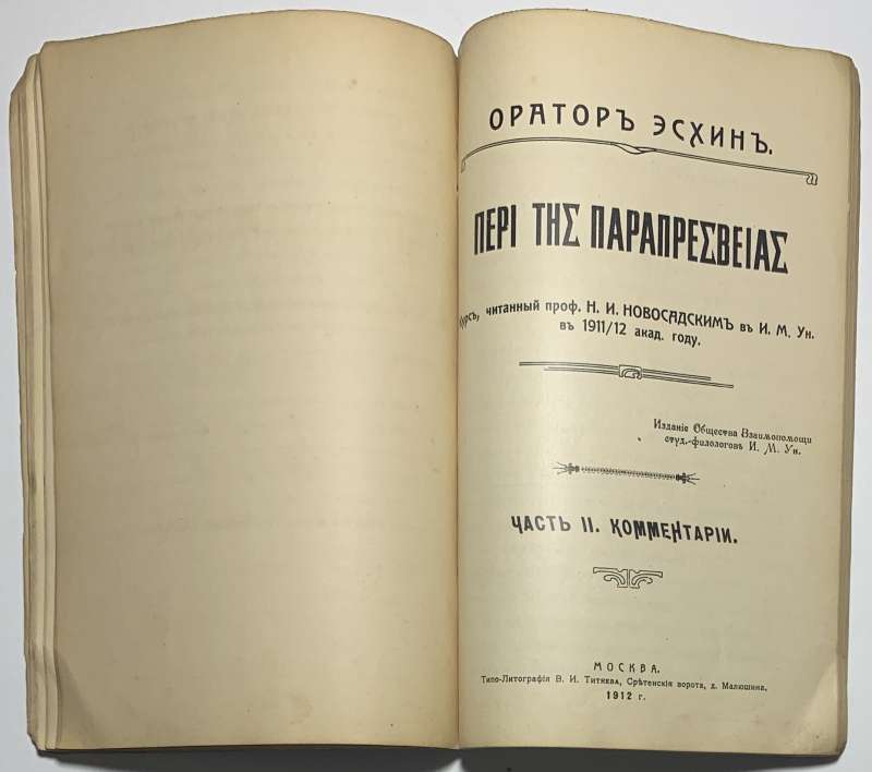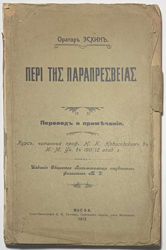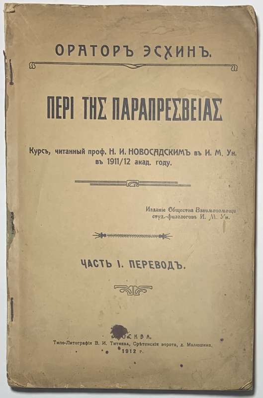 Главная страница » Товары » Религия и Философия » Новосадский Н.И. Оратор Эсхин. Часть 1 Перевод.; Часть 2 Комментарии.