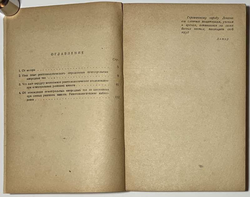 Героическому городу Ленина, его славным защитникам, ученым и врачам, оставшимся на своих боевых постах, посвящает свой труд Автор. Книга издана в августе 1942 года в блокадном Ленинграде.