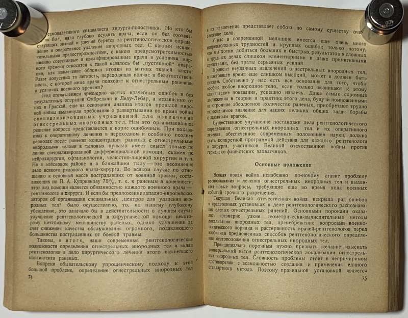 Публикуемые в книге «Очерки« охватывают лишь два крупных вопроса военной рентгенологии. Первый вопрос — об определении при помощи рентгеновых лучей огнестрельных инородных тел — это несомненно главнейший вопрос общей и частной военной рентгенологии. Второй вопрос — о роли и значении рентгенологического исследования для клиники острых огнестрельных ранений живота и в первую очередь брюшной полости — это почти совершенно новый вопрос. Эта тема только сейчас, в условиях идущей войны, стала вообще реально возможной.