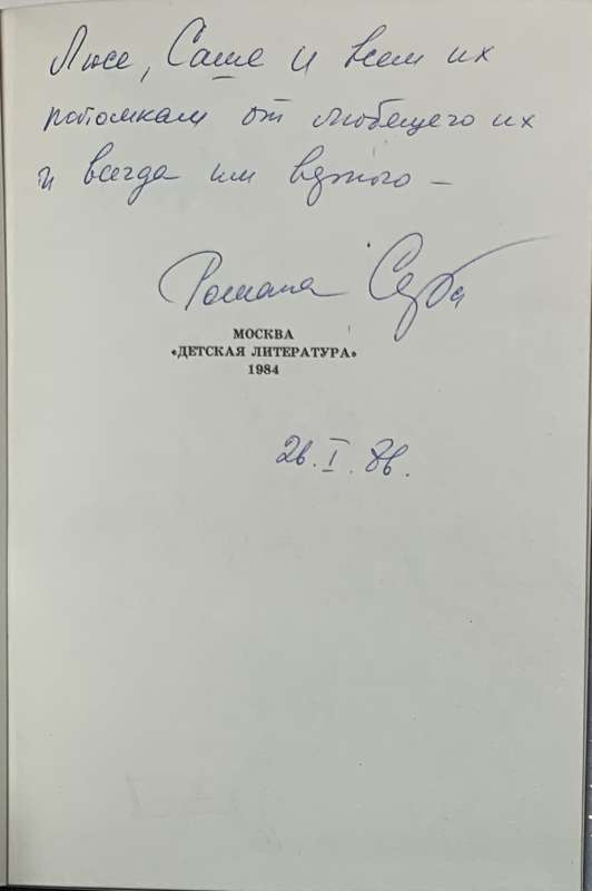 С инскриптом автора на авантитуле: `Люсе, Саше и всем их потомкам от любящего их и всегда им верного Романа Сефа 26.I.86`