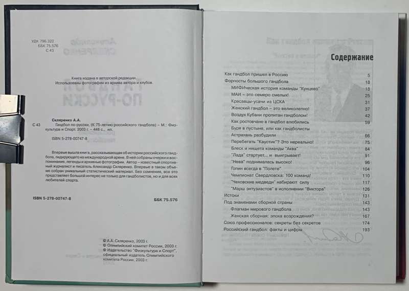 Впервые вышла книга, рассказывающая об истории российского гандбола, лидирующего на международной арене. В ней собраны очерки и воспоминания, легенды и архивные фотографии. Автор – известный спортивный журналист и писатель Александр Скляренко. Впервые в таком объеме собран уникальный статистический материал. Без сомнения, все это представляет большой интерес не только для гандболистов, но и для всех любителей спорта.