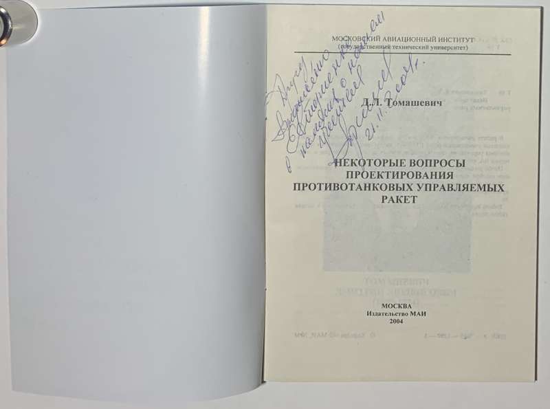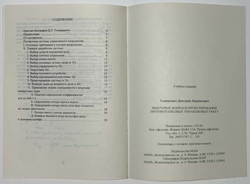 Томашевич Д.Л. Некоторые вопросы проектирования противотанковых управляемых ракет.