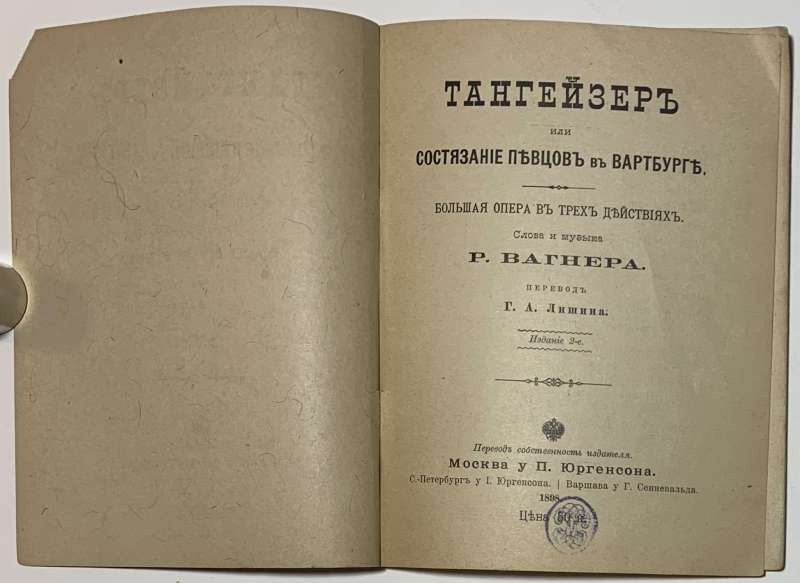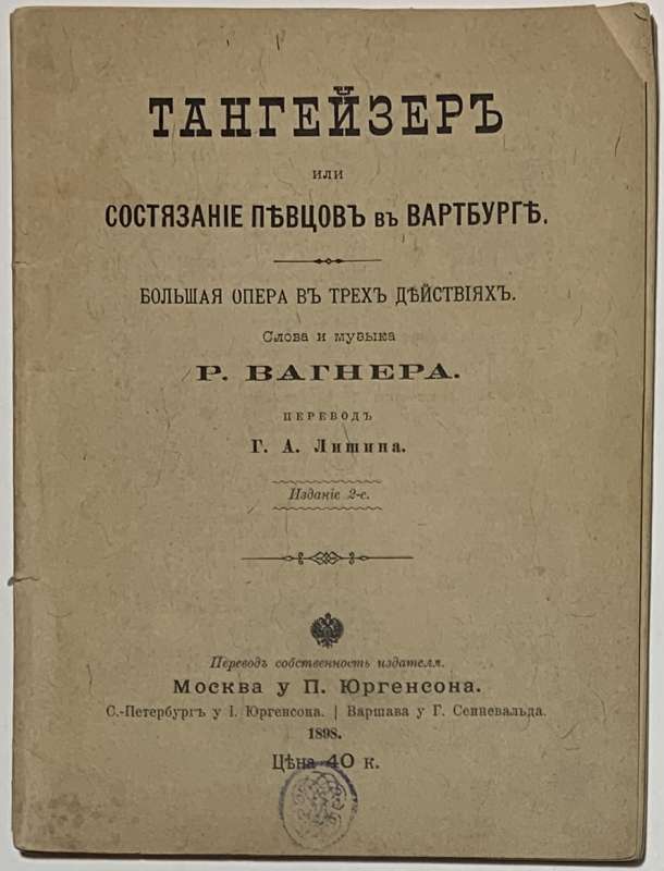 Большая опера в трех действиях. Слова и музыка Р. Вагнера. Перевод Г.А. Лишина. Издание 2-е.
