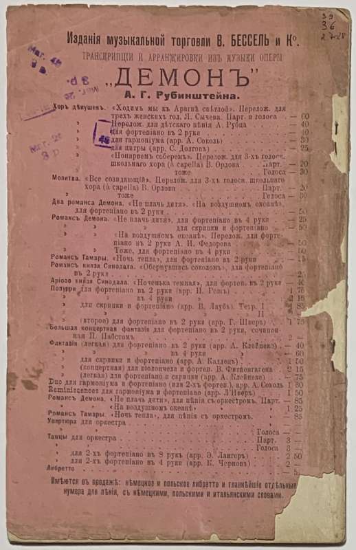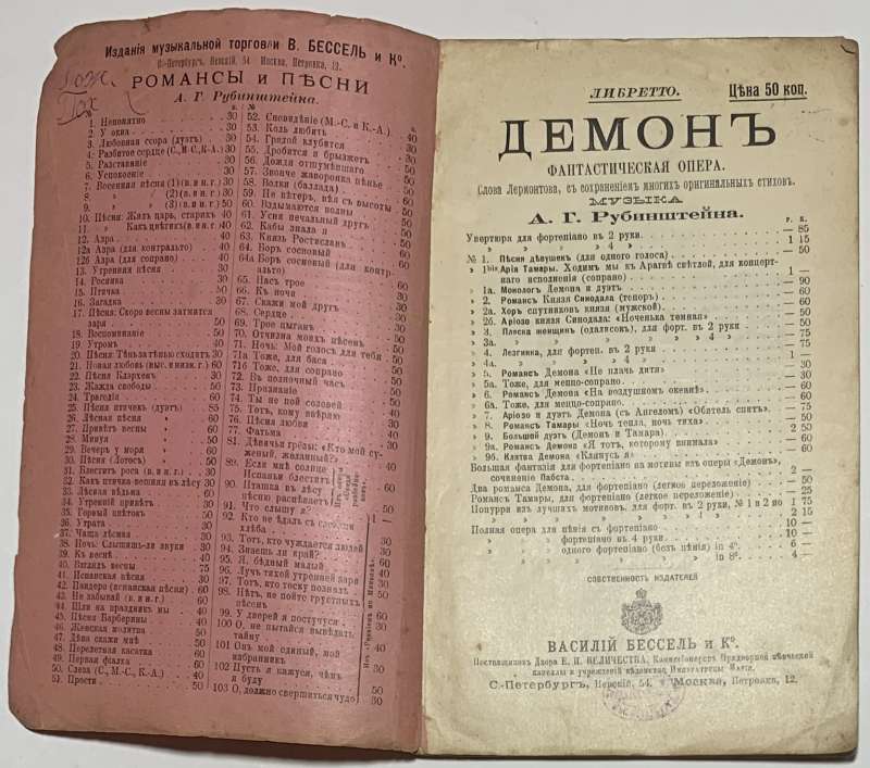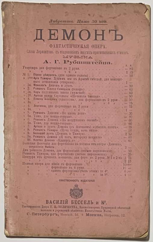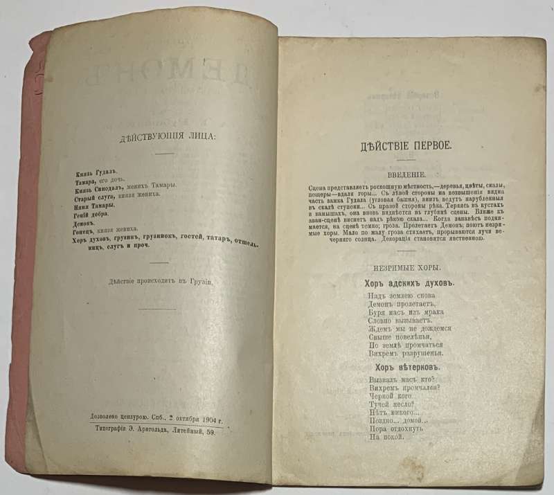 Фантастическая опера в 3 действиях. Либретто. По Лермонтову, с сохранением многих оригинальных стихов. Муз. А.Г. Рубинштейна.