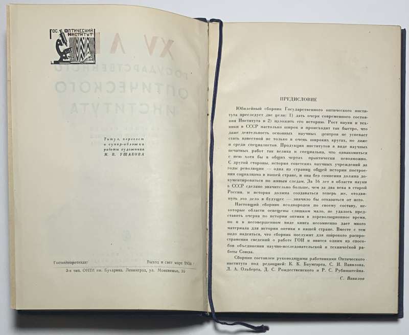 XV лет Государственного оптического института. Сборник статей под общ. ред. акад. С.И. Вавилова.